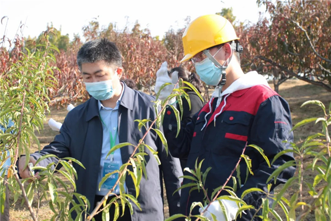 实操比赛环节展开后,选手们立刻全神贯注地投入到了修剪中,他们动作娴熟,经验老道,有的手持修枝剪剪去高处枝,有的则紧握手锯灵活舞动,很快一棵棵修剪成形的碧桃,便在他们的巧手之下呈现出来。