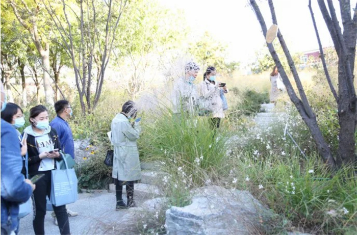 大家分成三组乘车共同来到东城区大通滨河公园进行现场观摩。在行驶过程中还进行了沿途三个项目的浏览学习,每组分别由项目单位进行讲解。以组为单位学习,让大家能够在同一时间有条件也有机会学到所有的最关键的技术内容、技术问题。各位专家依次进行现场讲解,按照既定路线,走到哪里说到哪里,将沿途的点滴细节依次讲解,从植物配置,施工工艺、生态环保、设计创意再到文化传承等方方面面逐一讲解,各单位观摩人员同专家进行交流,彼此间也频频交流专业内容,形成了一场北京市园林行业学术交流的盛会。在观摩过程中大家纷纷拿出手机拍摄记录,为今后的项目奖项申报打好基础、做足准备,打造出更加优质的园林景观项目。