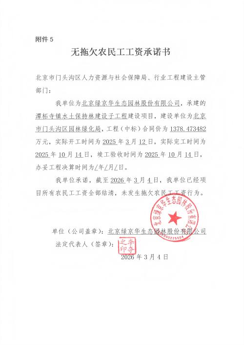无拖欠农民工工资承诺书公示(一)