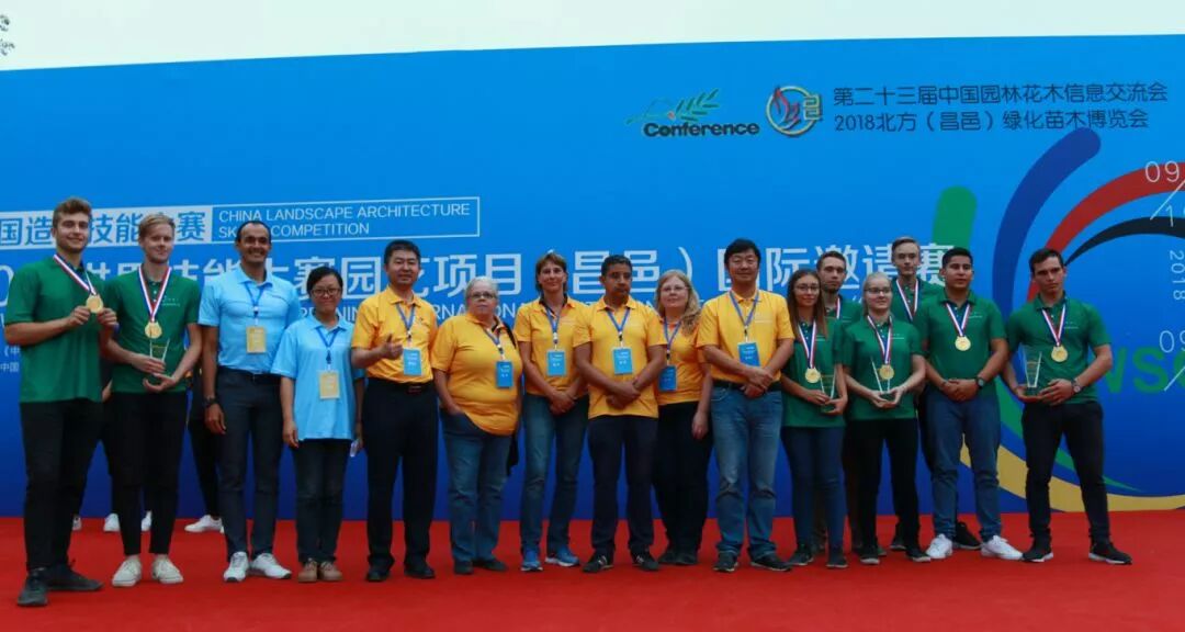 下午五点钟,在昌邑·北方花木城举行了2018世界技能大赛园艺项目(昌邑)国际邀请赛的颁奖仪式。