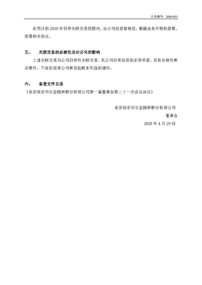 [临时公告]绿京华:关于预计2020年日常性关联交易的公告